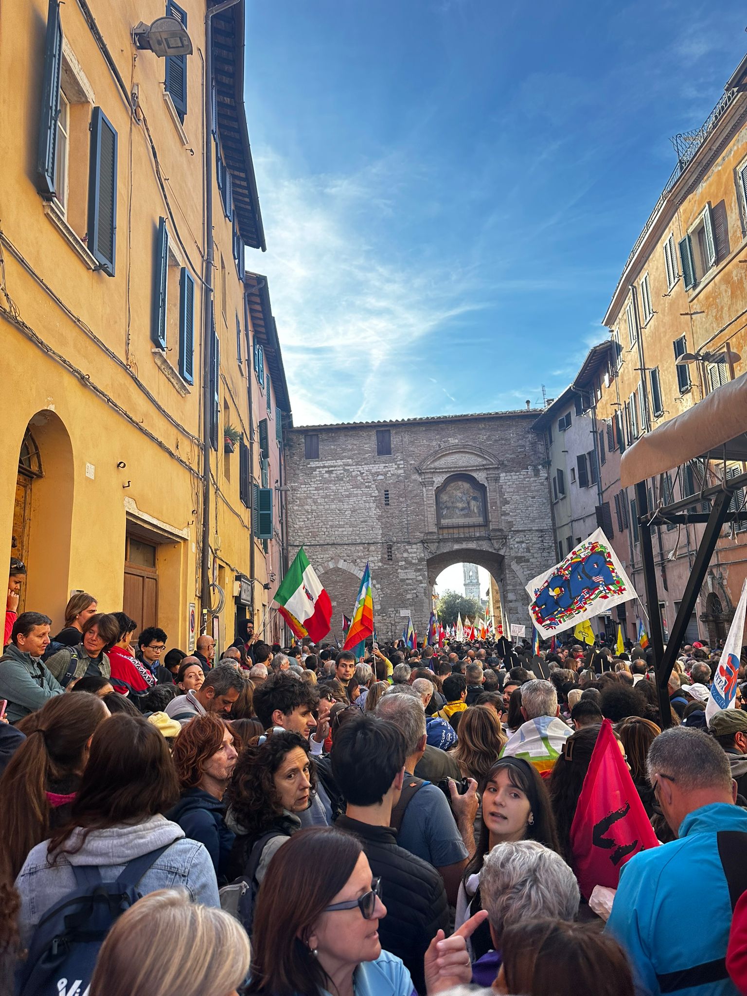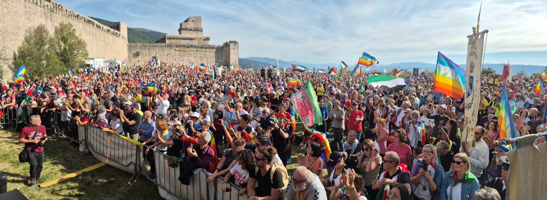 Da Papa Leone è giunta la benedizione e l’auspicio a che la manifestazione "sostenga l'impegno degli Organismi internazionali in favore di soluzioni rispettose dei diritti di ciascuno e capaci di creare condizioni necessarie perché finalmente all'odio subentri l'amore, all'offesa il perdono". Scuole, amministrazioni, sindacati, associazioni, tantissimi bambini, nonni, genitori, lavoratori: un fiume di gente colorato e pacifico unito dalla Fraternità.